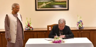 পরিদর্শন বইয়ে স্বাক্ষর করেছেন জাতিসংঘ মহাসচিব