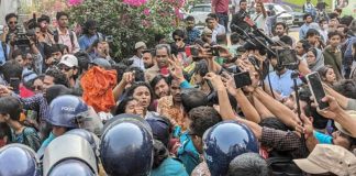 ইন্টারকন্টিনেন্টাল মোড়ে পুলিশের সঙ্গে ধর্ষণবিরোধী বিক্ষোভকারীদের সংঘর্ষ